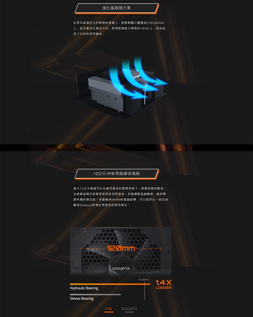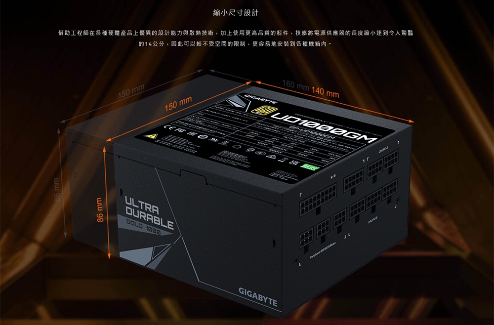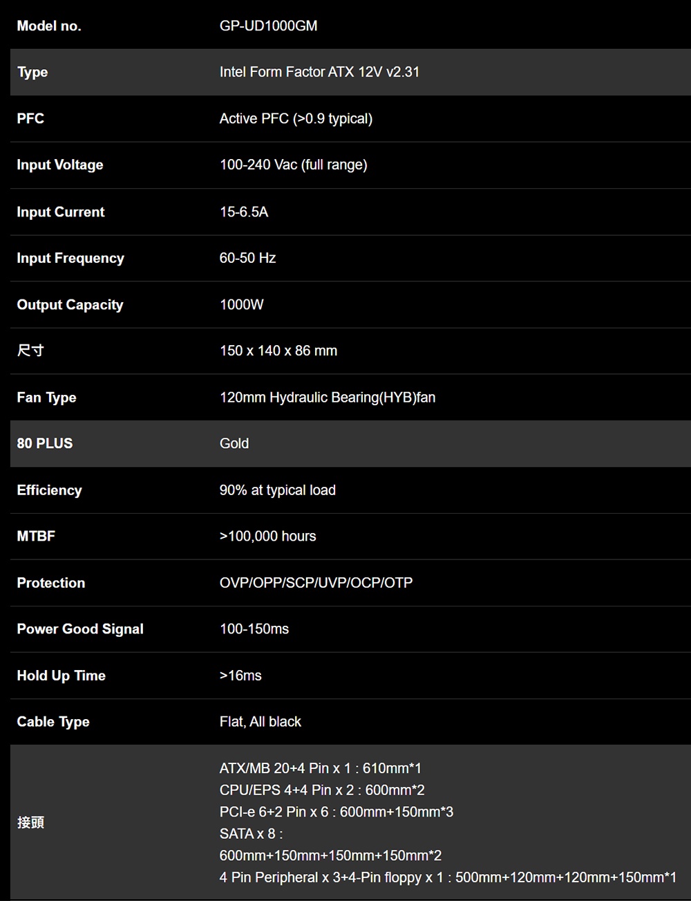 技嘉 UD1000W 80+金牌全模組 電源供應器